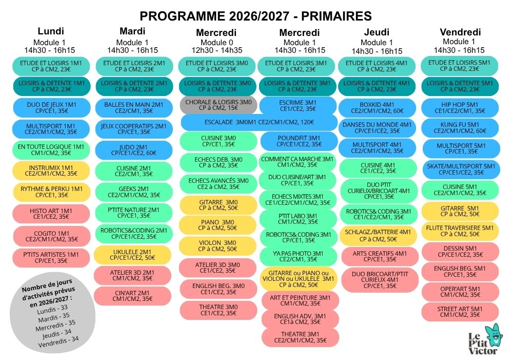 Pour les ré-inscriptions (adhérents actuels) : vous recevrez dans les prochains jours toutes les informations nécessaires ainsi que le calendrier des réinscriptions qui auront lieu entre mai et juin selon le niveau de classe de votre enfant à la rentrée 2026/2027.